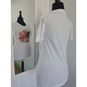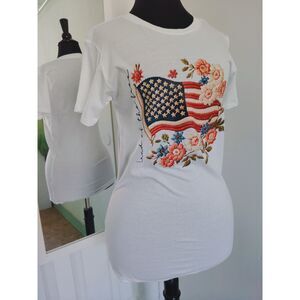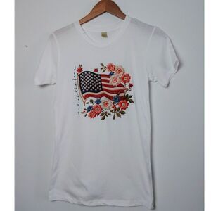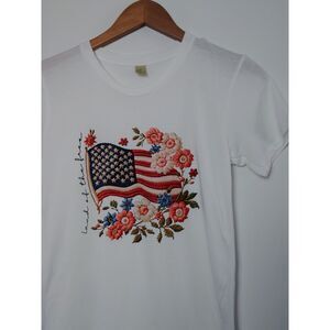Alternative 100% Cotton Cursive "Land of the Free" Flag Floral Patriotic Tee M