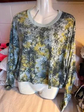 Style: Long-sleeve, cropped or standard-length t-shirt with ribbed cuffs and a crew neck.
