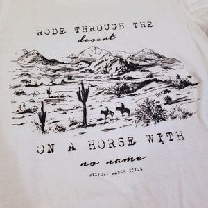 South-western vibes crisply screen printed on a buttery soft, clean white short sleeve tee with the (almost) lyrics of a classic America song. No flaws- never worn! Still has the hang tag from the cute hometown-Texas-boutique it was purchased from. My sizing mistake is your gain! Please ask any questions and inspect all photos prior to purchase. Offers welcome!