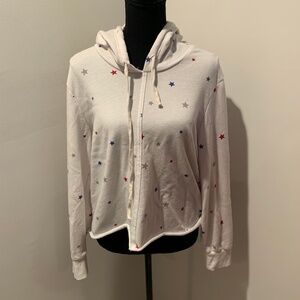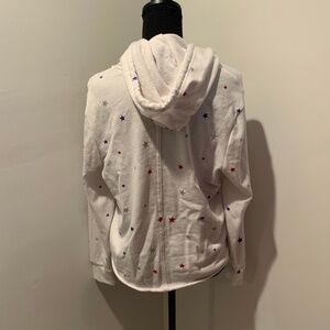 Alternative Apparel pull over hoodie. White with red, blue and gray stars. Women's size small. Gently used with no flaws.