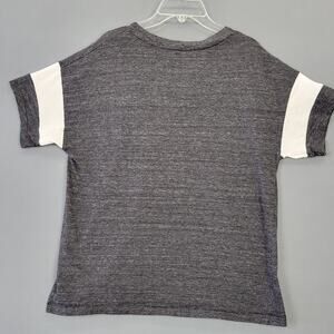 Alternative Earth Women's T-Shirt Size M Gray Heather Dark Charcoal Sporty White Stripes Classic V-Neck Short Sleeves Lightweight Polyester Cotton Rayon Top