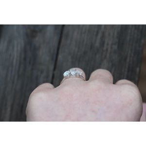 Fine Sterling Silver and Raw Diamond Engagement Ring.