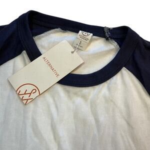 Alternative Men's White & Navy Blue Keeper Baseball Tee Shirt, Size Small