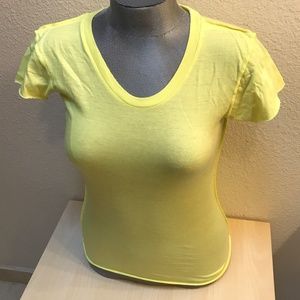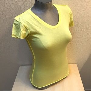 Style notes: scoop neck has traditional edging. seems are inside out type, edge of sleeves & hem fabric edge. very nice. its a t-shirt, super comfy, & you'll love it.