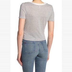 Slip into style with this laid back, short sleeve tee that features a streamlined V-neckline and is elevated with a tied front, making it a trendy new addition to your wardrobe.