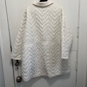 Stay warm and stylish with this elegant white quilted jacket. Perfect for layering, this jacket offers both comfort and fashion.