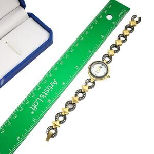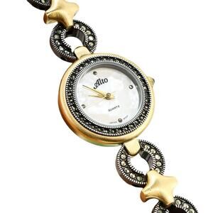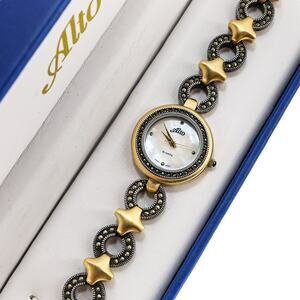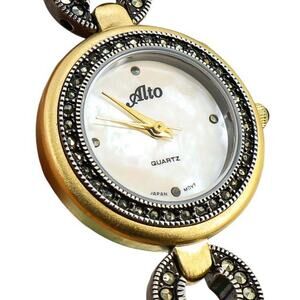 Alto Women Watch 8062 MOP Dial 2 Tone Band Marcasites Art Deco Style With Box