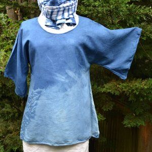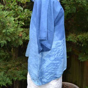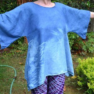 Gorgeous one-of-a-kind BLOUSE- designed and created entirely by hand and hand-dyed with Natural Indigo Dye by me. The linen is soft, breathable and gorgeous; thIs unique design is called "FLOW".