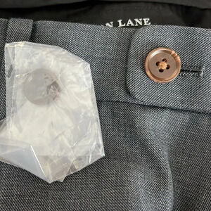 Alton Lane Tailored Fit Flat Front Suit Pants in Gray - NWOT - Size 35. New without tags. These came to me in a pallet. I think there may be a matching jacket but not sure if I've got it yet or not. If I do come across it, it will be listed separately. The care and contents tag would be attached to the inside of the jacket. Sold at Nordstrom. May be some pallet dust/dirt. Approximate measurements: 19" waist, 10 1/2" rise, 33" inseam. Extra button provided.