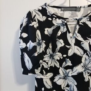 Alton gray floral print top V Cut out New no tags Cat friendly home A
