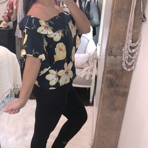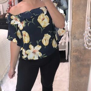 Altr’D State size small navy & yellow off the shoulder boho floral top