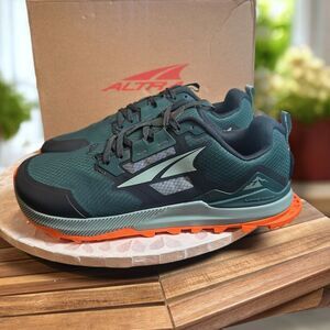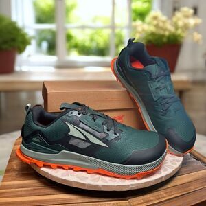 Altra Lone Peak 7, Altra trail running shoes, men’s trail shoes size 10, Altra zero drop, Altra hiking shoes, green orange running shoes, Altra Deep Forest, Altra men’s Lone Peak