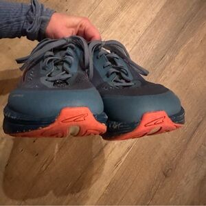 Altra Paradigm 5 running sneakers, size women’s 10. Good used condition, has some wear/dirtiness to the tread and outer rim. Stain the the toe. Photos are the best representation of wear, please review carefully before purchasing.