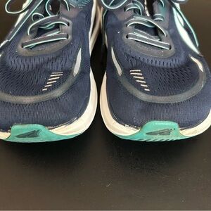 These ladies navy blue and white Altra running shoes are a size 9.5 and are in good preowned condition. Please see photos as they are part of the description and show the wear and condition of the shoes. Questions? Leave a comment below!