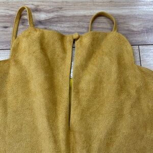 Chic mustard yellow tank with scalloped edges. Perfect for a stylish look.