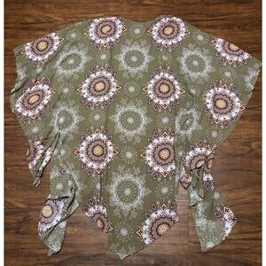 Altr'd State Small Green Mandala Pattern Short Sleeve Cover Up Cardigan Kimono
