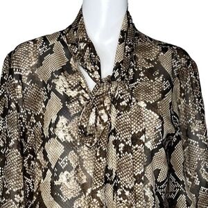 Altuzarra Blouse Women Large Brown Snake for Target Sheer Tie Neck Popover Edgy