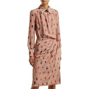 Altuzarra Kat Feather Printed Silk Midi Salmon Pink Dress 36