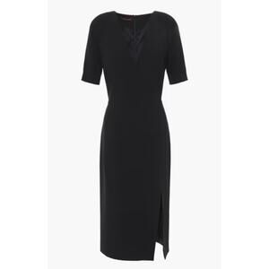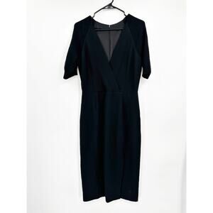 Altuzarra V-Neck Knit Sleeve Woven Knee Length Slit Sheath Dress Black Size 40