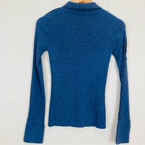 Altuzarra dusty blue colored wool and cashmere sweater. Full front button with button detail up each sleeve as well. Polo collar. Size small.