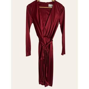Altuzarra for Target Red Tassel Tie Waist V-Neck Satin Wrap Dress Size XS