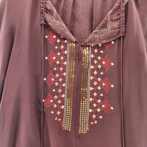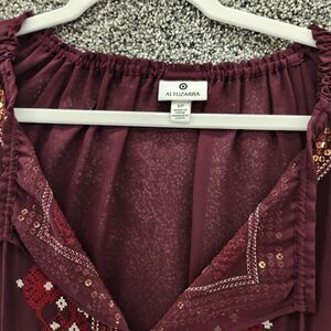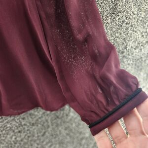 Altuzarra small petite burgundy long sleeve embroirdered sheer blouse