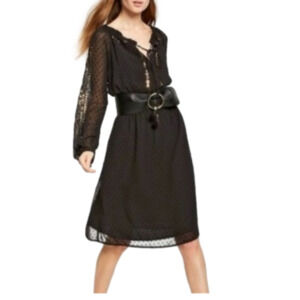 This exquisite dress from the limited edition collection by Altazurra for Target is sure to turn heads. Sheer and lined with embroidered details and sequins, plus a tie with tassels—it's a perfectly fun, yet sophisticated party dress. Gathers at the waist, Lined in Excellent used condition. with no visible flaws. note The 1st picture has an additional fashion belt it does not come with it just shows ways to dress it up!
