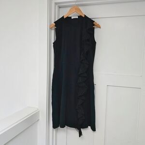 Altuzarra Livinia Pleated Ruffle Trim Zip Front Midi Dress in Black