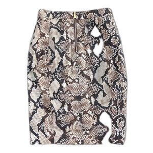 The perfect combo of sexy & elegant, this python print pencil skirt is from French luxury brand Altuzzara's Target collection. A beautiful print ranging rom deepest browns to beige, 9 inch front side slit and trademark "Altuzzara" zipper, with gold back zip detail for a little extra flash! Form fitting and curve hugging, hits around knee length.