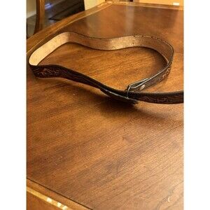Alumaline 4108 Belt Buckle & Belt BB-317 Leather & Brass Vintage Eagle 49”