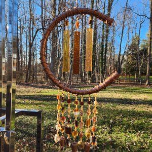 Aluminum Copper Wind Chime Stained Glass Lampwork Glass Bead Handmade Home Decor