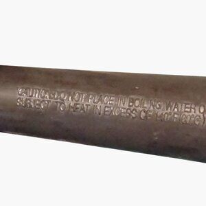 some surface scratches consistent with age. Handle features a warning against excessive heat exposure.