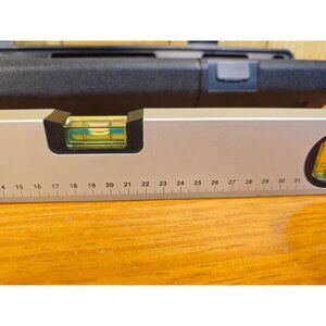 A durable aluminum level designed for precision and reliability. Includes a hard plastic protective case for secure storage and portability.