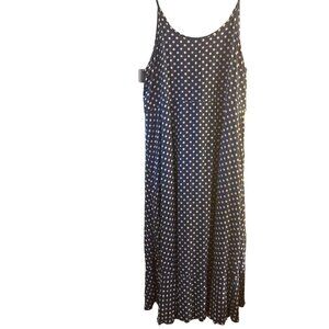 Alunalevi Womens XL Blue Poka Dot Maxi Dress Sleeveless Spaghetti Strap NWT