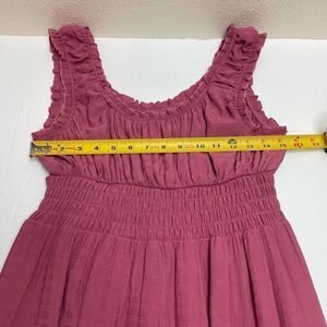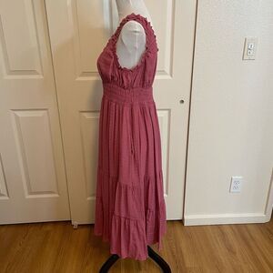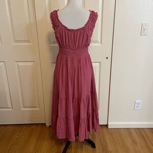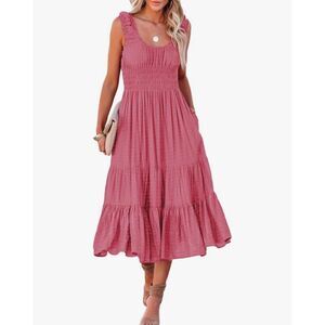 AlvaQ Summer Dress Sleeveless Smocked Midi High Waist Tiered A Line Sundress with Pockets Rose Size Medium