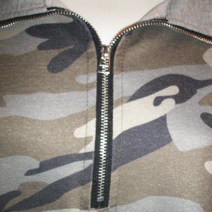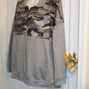 AlvaQ Womens XL Long Sleeve Quarter Zip Sweatshirt Pullover Gray & Army Camo