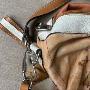 Alviero Martini 1 Classe Leather retro map print crossbody bag silver accents