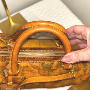 Alviero Martini Boston Handbag. Top handle and has a crossbody strap. Preloved. Minor wear. See pictures for corner and patina condition. Clean interior.