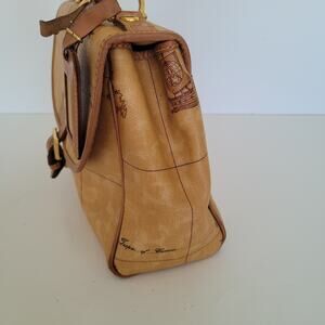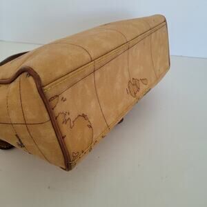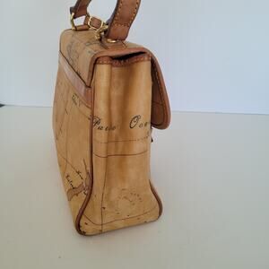 Alviero Martini Vintage Handbag Bag Purse Map Geo Leather Brown Flap Medium