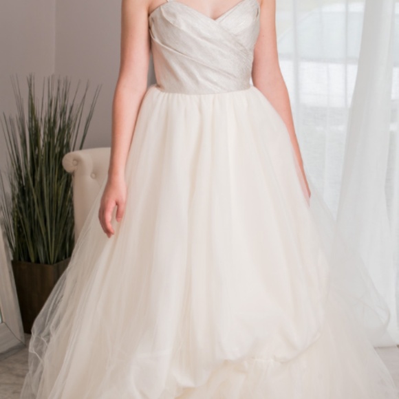 Alvina Valenta Silver Ivory Strapless Tulle Wedding Dress Size 10 Sample $3,100 Original.