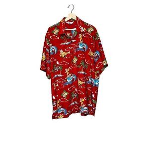Alvish red Hawaiian surfing Santa short sleeve button up shirt size 2XL