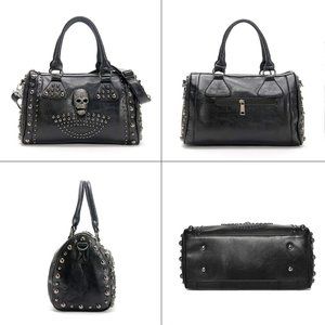 AlwaySky Women Skull Handbag Large Capacity Gothic Shoulder Bag Studded Doctor
