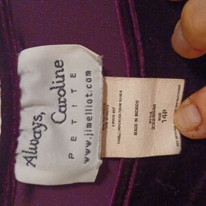 Always Caroline petite vintage velour long sleeve top S L beautiful eggplant color (tag says 14, more like 10-12) Excellent condition