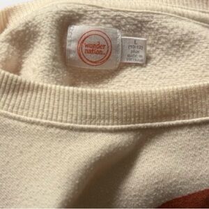 Cozy cream sweatshirt with colorful mountain graphic. Ideal for casual wear. Brand is Wonder Nation, size 10/12 Plus. No visible flaws or signs of wear.