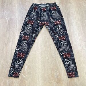 Always Fuzzy Velour Patterned Leggings Maroon Black Combo, Women’s Medium