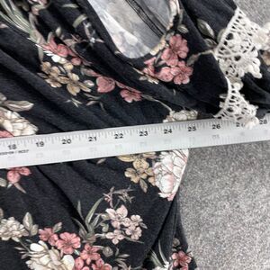 Always Indigo Blouse Women 3X Plus Black Floral V-Neck 3/4 Sleeve Tasseled Rayon
