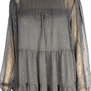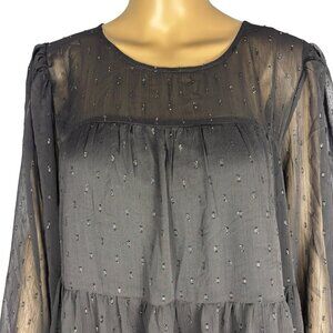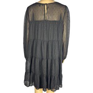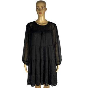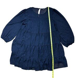 Always Indigo Tiered Mini Dress Women’s Plus Size 1X Black Mesh Printed