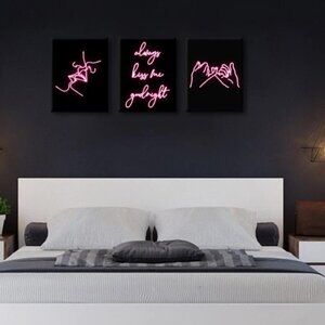 Always Kiss Me Goodnight Canvas Sign, Pinky Promise Neon, 3 Pieces