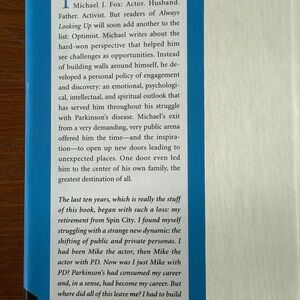 Always Looking Up: The Adventures of an Incurable Optimist shares the critical themes of Michael's life: work, politics, faith, and family. The book is a journey of self-discovery and reinvention, and a testament to the consolations that protect him from the ravages of Parkinson's. With humor and wit Michael describes how he became a happier, more satisfied person by recognizing the gifts of everyday life.