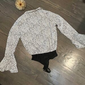Always Lovely Ivory and Black Print Long Sleeve Bodysuit XS